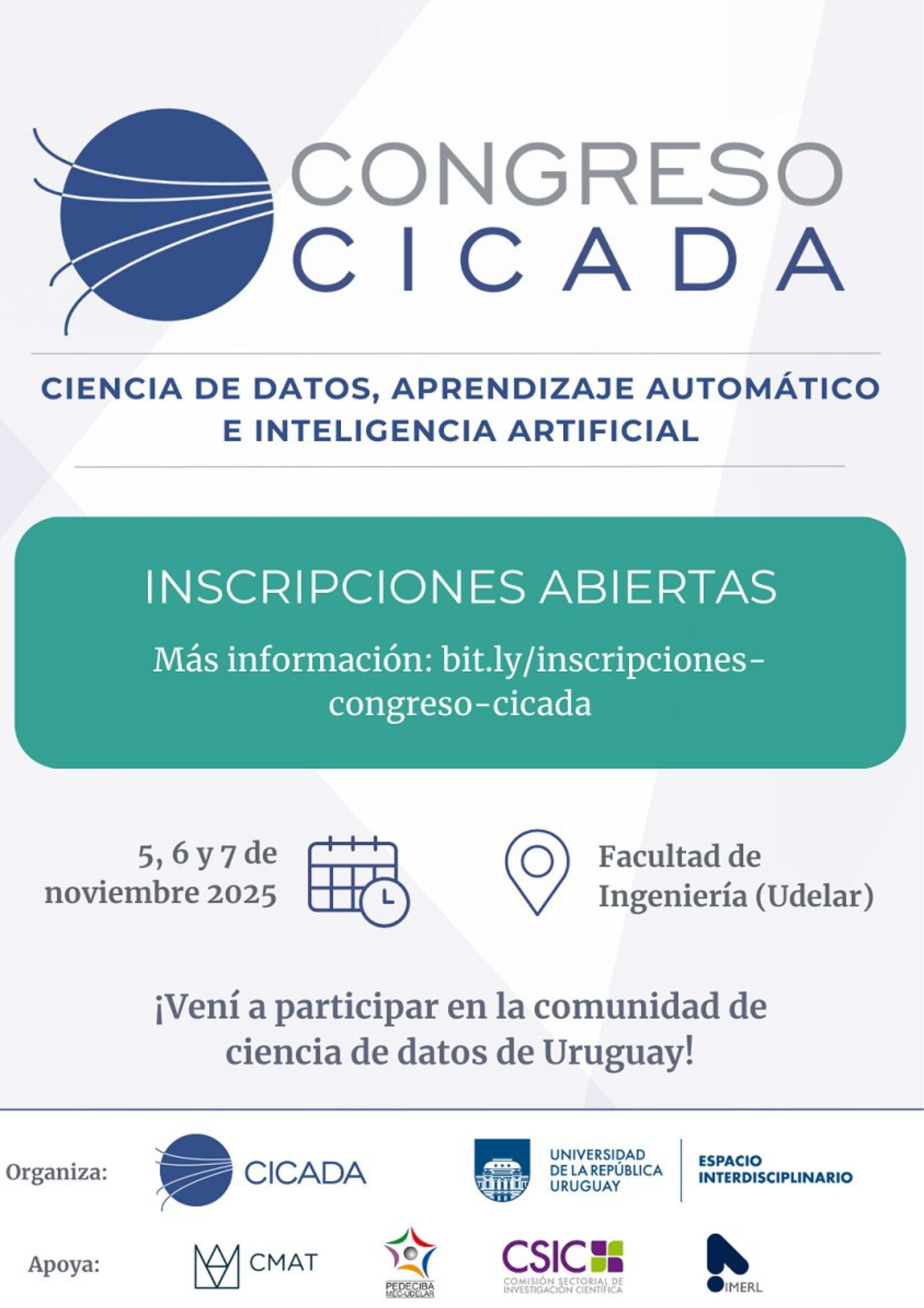 El congreso se realizará del 5 al 7 de noviembre en la Facultad de Ingeniería (UdelaR, Montevideo) y es organizado por el Centro Interdisciplinario en Ciencia de Datos y Aprendizaje Automático (CICADA) de la Universidad de la República.