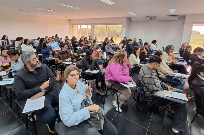 El Taller de Fortalecimiento convocó a más de 80 participantes, entre estudiantes de tercer año y docentes de la carrera de Maestra/o en Educación Primaria de los Institutos de Formación Docente (IFD) de Durazno, Rivera y Tacuarembó, junto con docentes-investigadores del CENUR Tacuarembó, muchos de ellos integrantes de PEDECIBA.