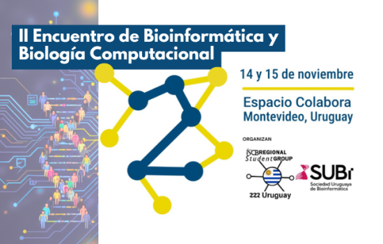 Montevideo será la sede del II Encuentro de Bioinformática y Biología Computacional. Organizado por RSG-Uruguay (ISCB Student Group) y la Sociedad Uruguaya de Bioinformática (SUBI). 14 y 15nov, en el Espacio Colabora