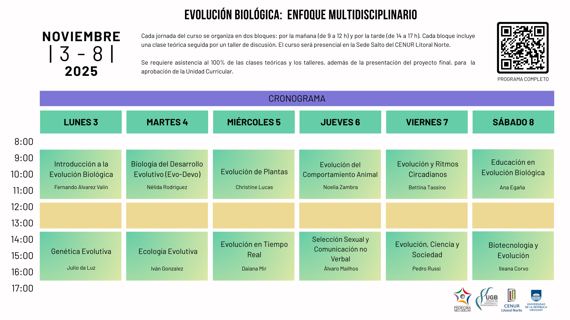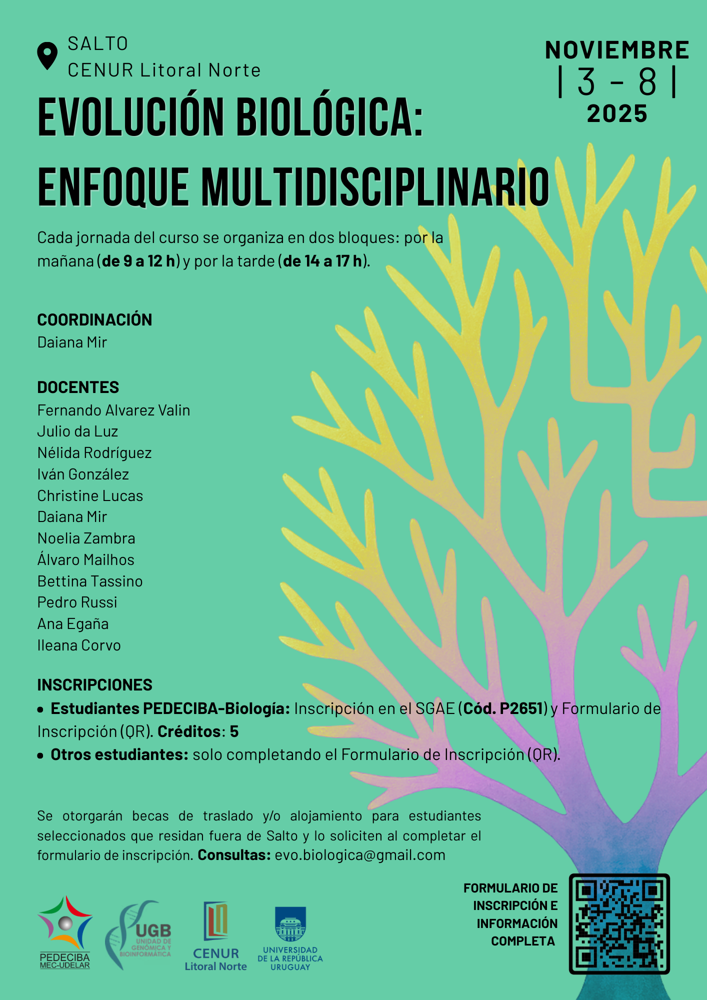 Este curso aborda la evolución biológica desde una perspectiva interdisciplinaria, integrando aportes de la biología, la filosofía, la historia de la ciencia y las ciencias sociales. Se analizan temas como selección natural, evolución cultural, biotecnología, comportamiento animal e inteligencia artificial. A través de clases temáticas y talleres de discusión, los participantes desarrollarán una comprensión crítica y amplia de los procesos evolutivos y sus implicancias en la ciencia, la educación y la sociedad, fomentando el pensamiento reflexivo y la integración de saberes en investigaciones, proyectos educativos y debates contemporáneos sobre evolución.