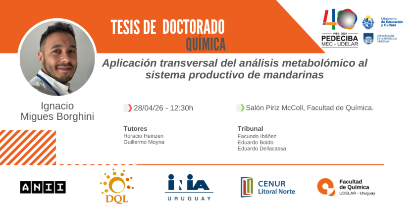 El Área Química del PEDECIBA anuncia la defensa de tesis de Doctorado en Química del estudiante Ignacio Migues.