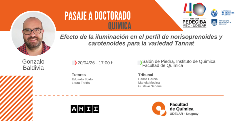 El área Química del PEDECIBA anuncia la defensa oral intermedia para pasaje a estudios de Doctorado del estudiante Gonzalo Baldivia.