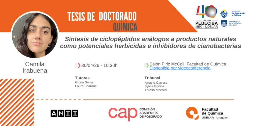 El Área Química del PEDECIBA anuncia la defensa de tesis de Doctorado en Química de la estudiante Camila Irabuena.